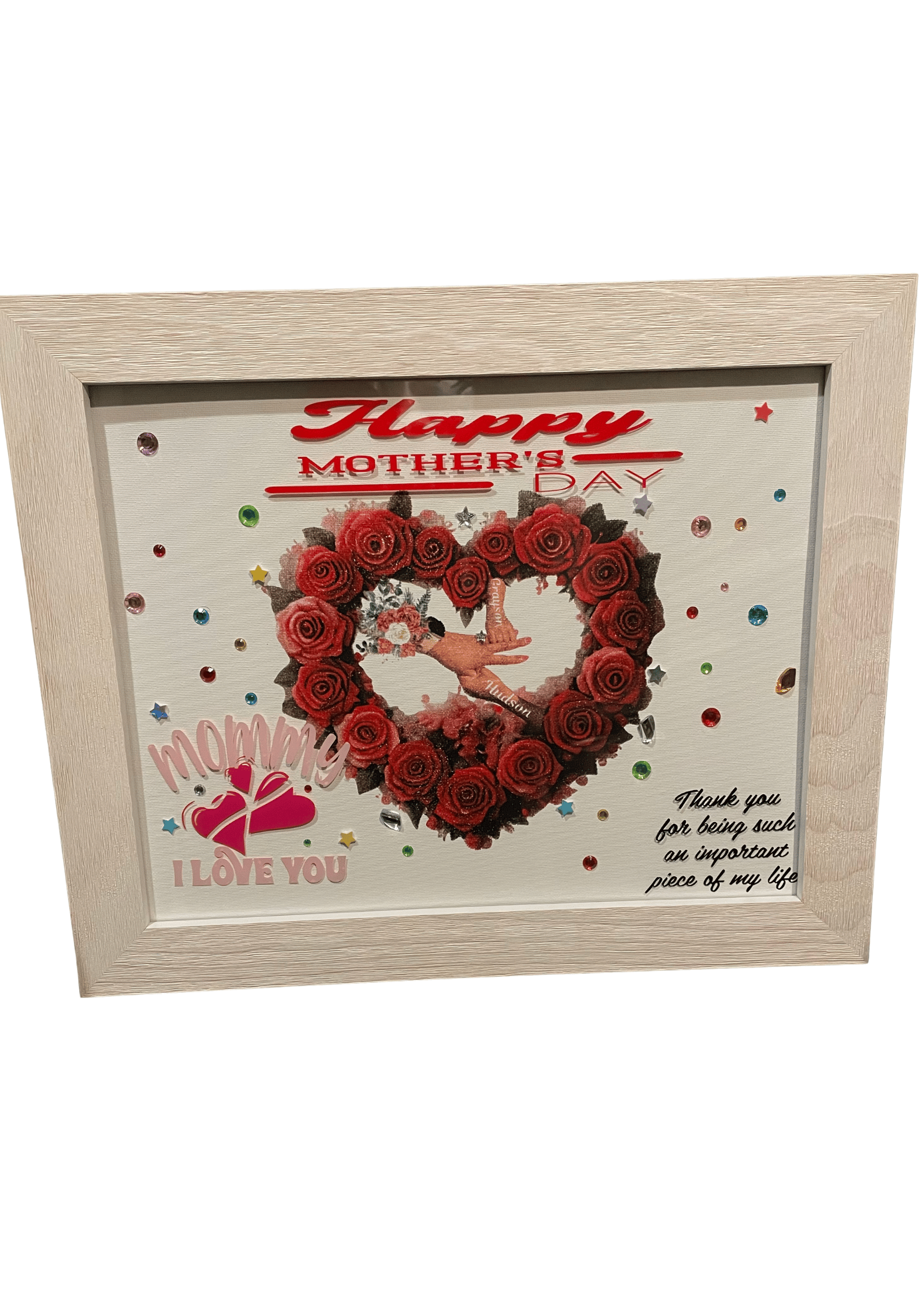 Nice polished wood frame showcasing a heartfelt display of love she can cherish every day. Chose the size and design, we'll take care the rest.